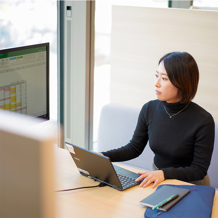現在の担当であるリテールサポートの専門性を高め、追求することで、当社の利益を生み出す人材に成長していきたいと考えています。社内に対しては、若手メンバーが力を発揮できる環境づくりや、ナレッジマネジメントによる成功事例の横展開などを通じ、メンバーを育成することにも力を注いでいきたいと考えています。