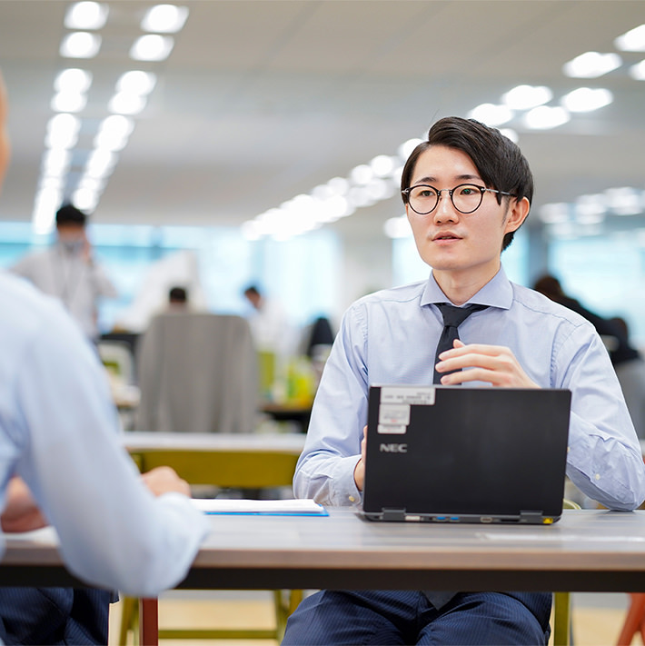 全社の基幹システム刷新プロジェクトに参加しました。新たな取引、事業が生まれるたびに、それに応じたシステム更改等を行っていたため、当時のシステムは、家でいえば古い家を「建て増し」した状態。そこで仕組みを抜本的に変えて、基幹となるシステムそのものを刷新しようという大規模なプロジェクトがスタートしました。今の時代に合ったスリムで円滑なシステムを構築し、一層の業務効率化、生産性向上を目指す取り組みですね。
